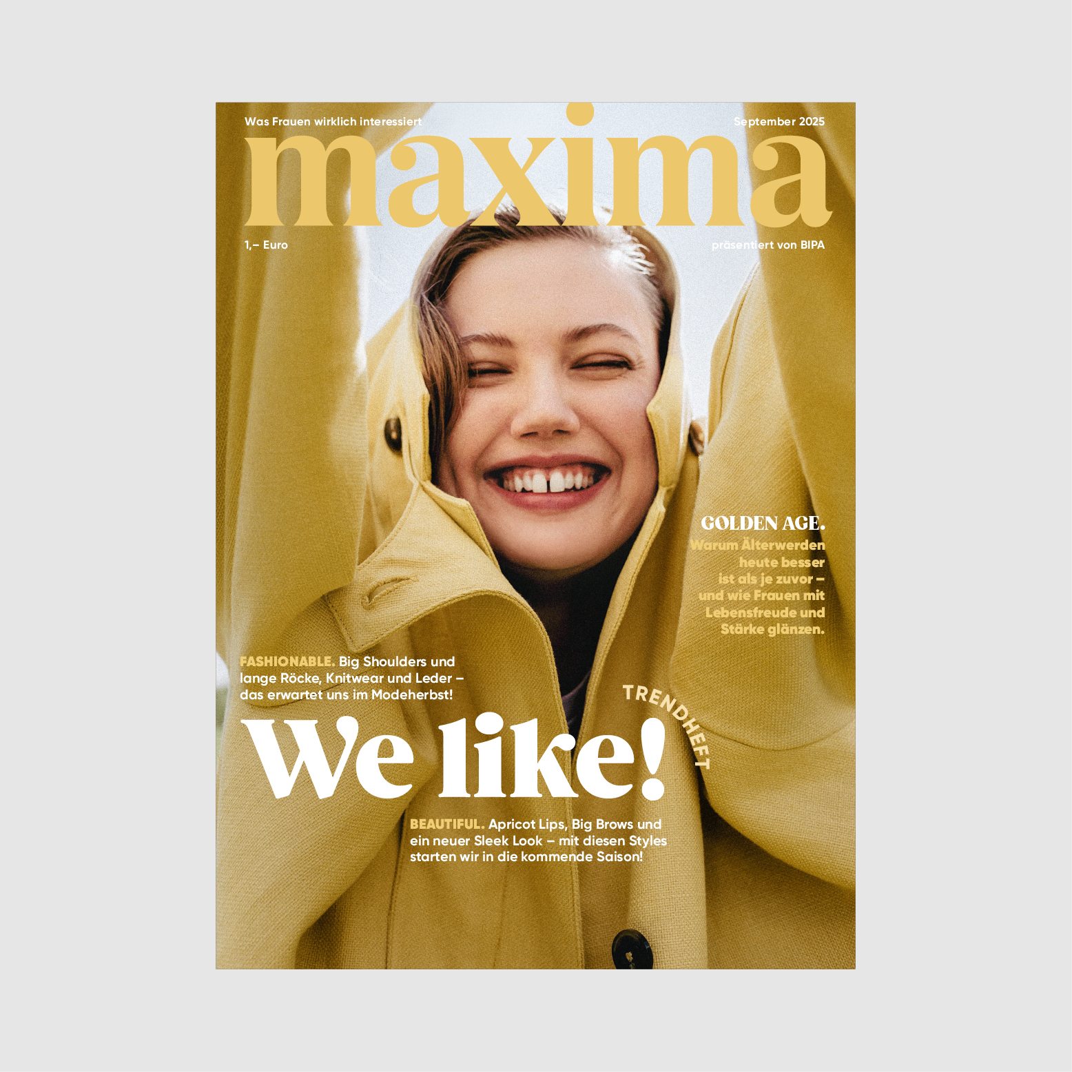 maxima – die maximale Trendsetterin. Unser Flagship – an jeder Kasse und bei fast jedem Friseur. Nur Originale, im besten Look und im liebevollen Layout. Alle Storys original recherchiert, geschrieben, hineingefühlt, top fotografiert und arrangiert.